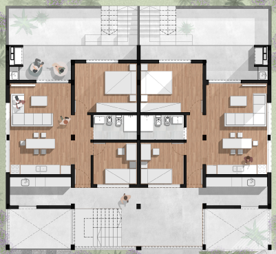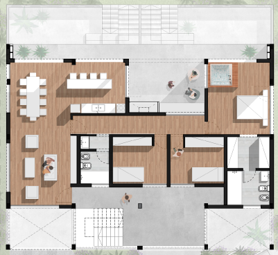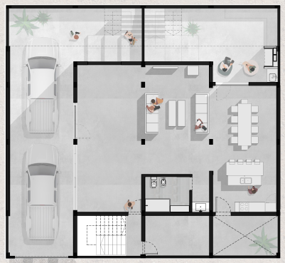 Diseñado con un Hormigón H21 reforzado con fibras de vidrio y aditivo impermeabilizante. Generando un hormigón fuerte a micro fisuras y 100% impermeable. Logrando cero ingresos de humedad en la porosidad del mismo, permitiendo exponer detalles en hormigón visto a muy bajas temperaturas. Y permitiendo la planta enterrada con cero permeabilidad.