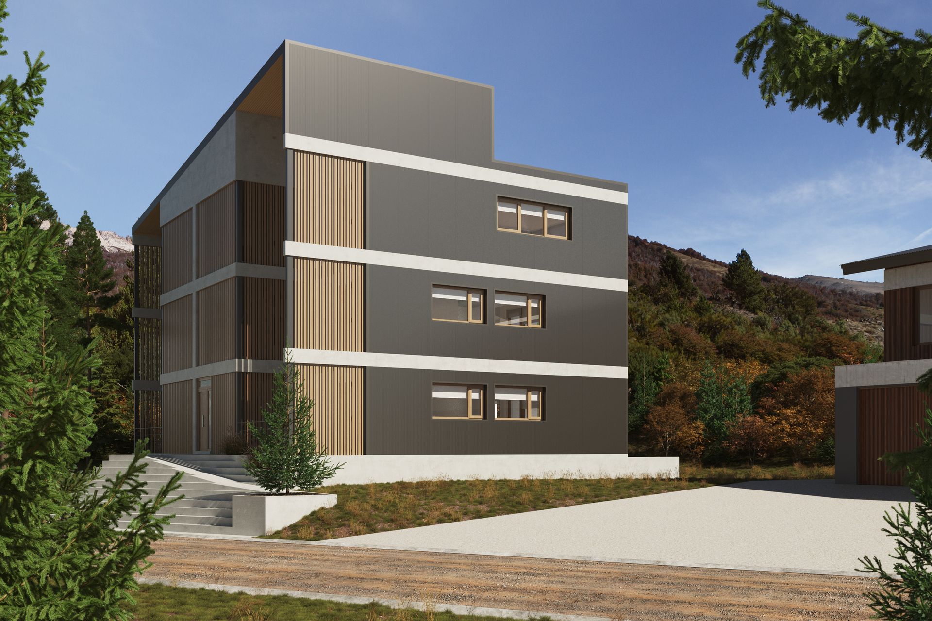 Buscando diseño y eficiencia térmica, damos con un sistema constructivo de alta performance. Núcleo aislante de EPS y revestimiento exterior metálico prepintado color Gris Pizarra.